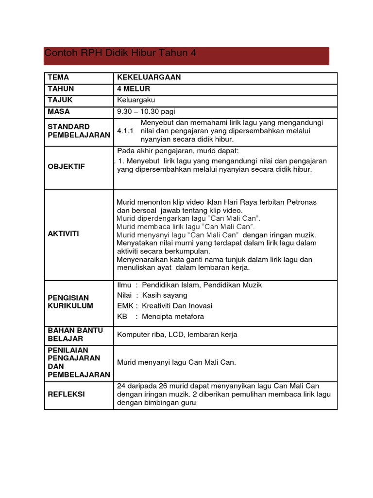 Contoh Rph Tahun 4 Pdf